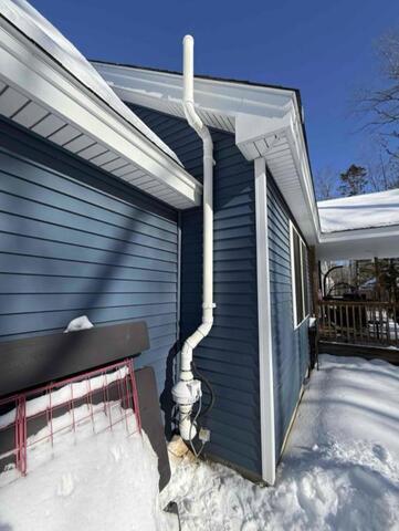 We installed a radon mitigation system routed to the right-side gable end behind the doghouse, allowing for a clean and efficient setup. The installation was straightforward and completed without complication.